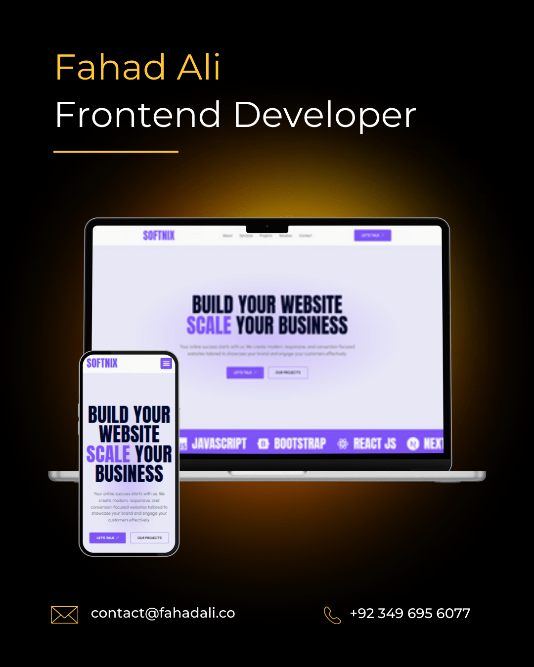 I am Fahad Ali a frontend developer with a strong passion for creating clean, functional, and performance driven websites. My work combines modern design principles with efficient development practices to deliver digital experiences that are both visually engaging and technically reliable.